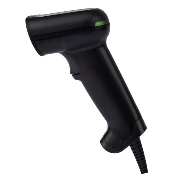 - The green-dot LED aimer and white illumination aids in easier targeting and enhances scan accuracy on high-density and low-quality codes in high-throughput environments.
