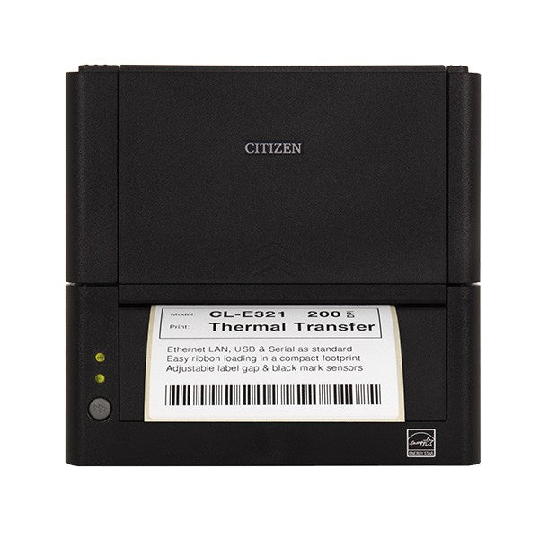 The new Citizen CL-E321 combines a unique and stylish design with outstanding performance and reliability, all in a compact, easy to use package. Designed for quick media and ribbon changes, the CL-E321 is equipped with wide 90 degree Hi-LiftTM opening mechanism, full connectivity and printer emulations. These features make it the ideal choice for applications ranging from high-end retail and healthcare, to logistics and courier services. Simple to setup and use, the CL-E321 ensures trouble-free operation , CL-E321 delivers speeds of 200mm/sec at 203dpi, with thermal transfer and direct thermal printing and it is available in black or white.