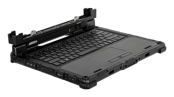 Featuring 4-level red backlighting, 83 full-size keys and an integrated touchpad, the keyboard dock with a built-in rear handle allows for a user-friendly, laptop-like operation to minimize mistakes and increase the efficiency as you perform data-intensive tasks. It also carries a variety of I/O ports for connections to peripherals and other devices. Its Double-locking mechanism strengthens the tablet-keyboard connection and prevents the keyboard from accidentally falling off.