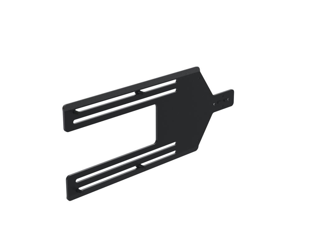 The flexible straight portrait bracket, fixed in between the screen and the VESA bracket, ensures straight alignment between the payment device and the screen. It allows any make of payment device to be mounted to a MultiGrip plate on the side of the kiosk.