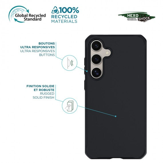 This case for Galaxy S25 - S24 has a reinforced structure, fitted with the Hexotek by IT Skins system. It provides a high protection against drops and shocks of intensive daily use. In addition, the built-in antimicrobial technology of this shell protects your smartphone by reducing the bacteria by up to 99.99%, for a healthier surface. In short, this ultra protective case offers you a double barrier of protection while keeping a very slim design, made from 100% recycled materials and 100% dedicated to your device!