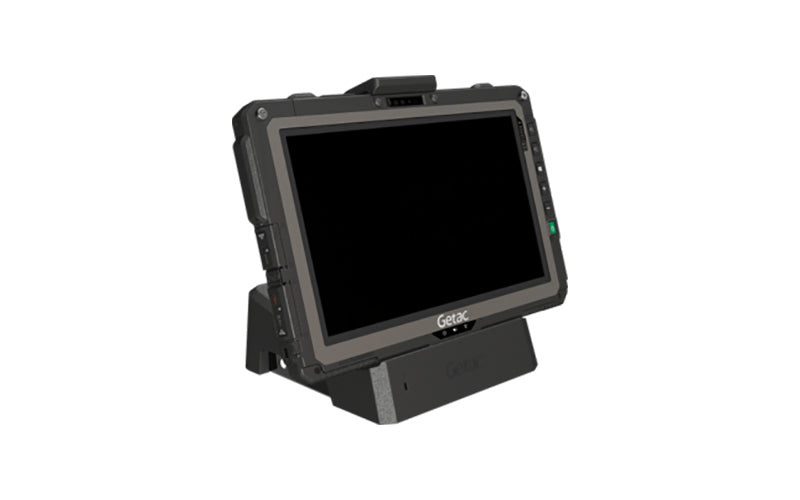 The Getac office dock brings out multiple I/O ports for connecting essential peripheral devices in office environment. Through the integrated ethernet, RS232, or USB connections, users can quickly collect and synchronize field data with central offices for real-time reporting and analytics. The HDMI and VGA ports also provide a convenient solution for sharing presentations or worksheets from a larger screen.