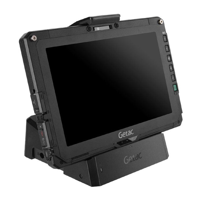 The Getac office dock brings out multiple I/O ports for connecting essential peripheral devices in the office environment. Through the integrated ethernet, RS232, or USB connections, users can quickly collect and synchronize field data with central offices for real-time reporting and analytics. The HDMI and VGA ports also provide a convenient solution for sharing presentations or worksheets from a larger screen.